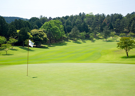 左に強めのドッグレッグ。山越えショートカットを避けて安全なフェアウェイセンター狙いならサービスホールに。