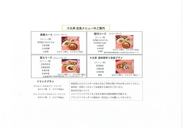 十九停会食メニューおひとり様6,600円~