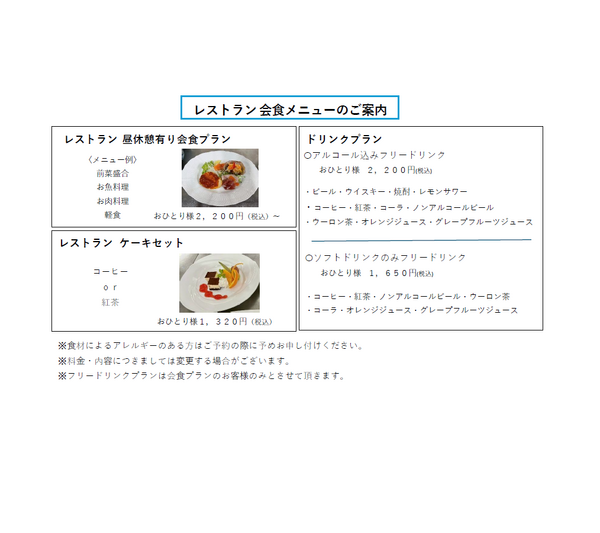 レストラン会食メニューおひとり様2,200円~